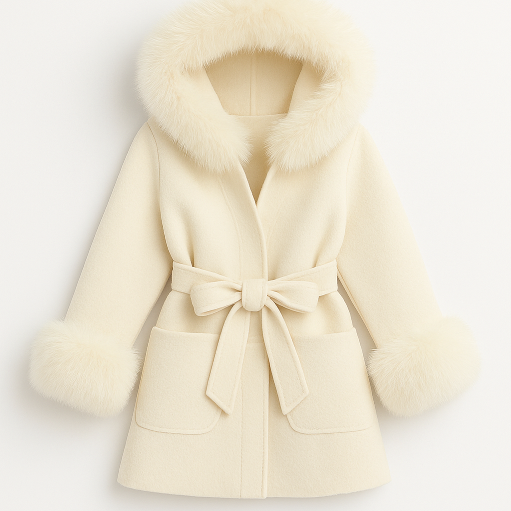 Ce manteau en laine et cachemire offre un style élégant avec ses manches en fausse fourrure centrées à la taille. Fabriqué à partir de matériaux de qualité, ce manteau vous gardera au chaud et confortable tout en ajoutant une touche de luxe à votre garde-robe.