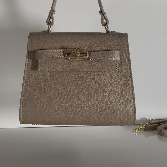 Élégance intemporelle et artisanat d’exception. Ce mini sac à main en cuir grainé pleine fleur est fabriqué en Italie selon les plus hauts standards de la maroquinerie de luxe. Sa silhouette structurée est sublimée par une ferrure dorée brillante et un système de fermeture raffiné à languettes croisées.